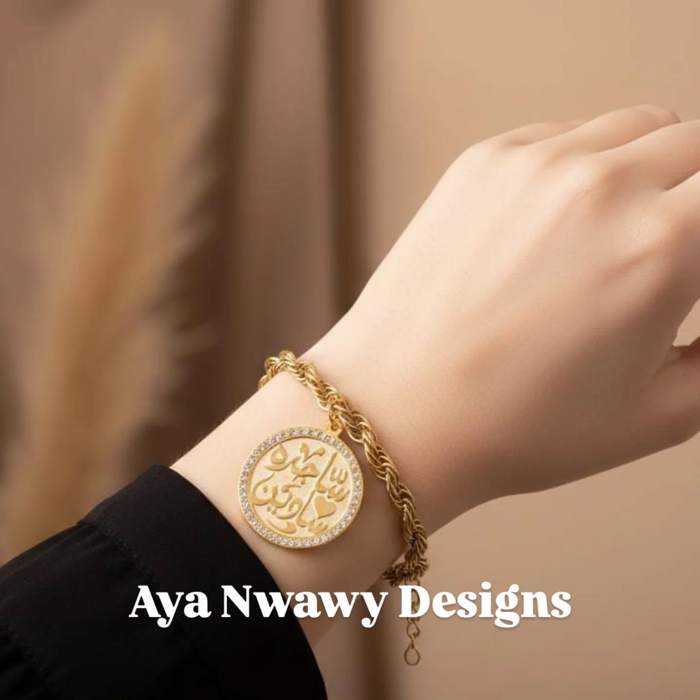 انسيال مع دلايه خط كوفي (نحاس مطلي دهب) مع حجر(عشوائي اللون)