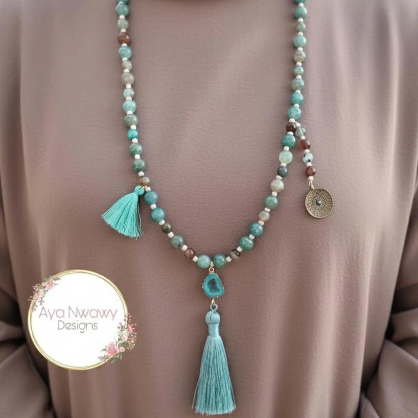 عقد ملون درجات لبني مع البني